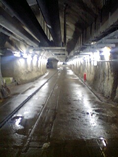駅を降りるとJRのガイドの人が待機していた。中は坑道になっていて、避難所や地上へ行くこともできるし、北海道側の吉岡海底駅まで23kmの道もある。