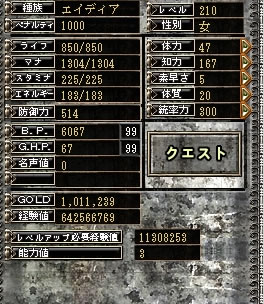 ガマクエ2セットでエイが210到達。